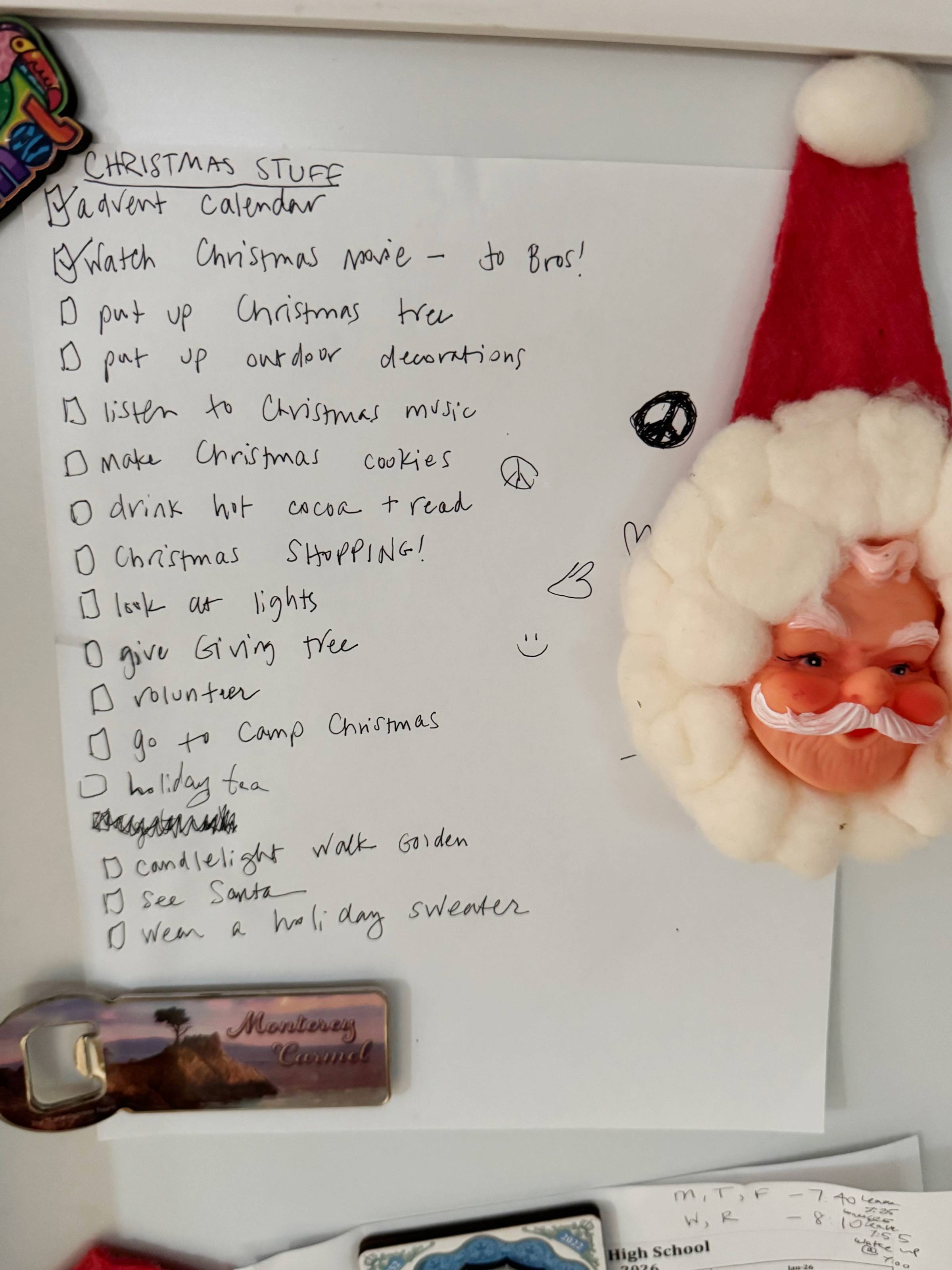 Hey Reader! I've been so grumpy about the holidays coming. Normally, by this point in the season, I'd be fully decked in jingle bells with Michael BublΓ© Christmas music oozing from my pores. Instead, I've been like Grumpy Elf over here, downing Peppermint Jojos and grumbling about the price of Scotch tape. Well, this weekend I had a remarkable turnaround and it's all due to...The Jonas Brothers. Now, in the spirit of full disclosure, I should tell you "Summer Baby" was my #1 most listened to song on Spotify Wrapped this year, a fact that should make me way more embarrassed than it does. So, yes, I'm a bit of a fan and maybe gave a little shriek when I heard about their movie, A Very Jonas Christmas Movie. IT SAVED MY CHRISTMAS (ATTITUDE). π It's exactly what you want from a holiday movie - ridiculous plot, cheesy love story, Santa hijinks, love winning out. But, you also get musical numbers, so much self-deprecating humor, and Will Ferrell as a crazed Jo Bros fan. It's holiday camp at its best and it restored my Christmas soul. Afterwards, I ended up throwing together a list of holiday ideas that we may or may not get through, but it's always good to have a visual nudge on the fridge (and then the kids will bug me about it). So, here is your reminder for this (overwhelming) season: You don't have to do it all.